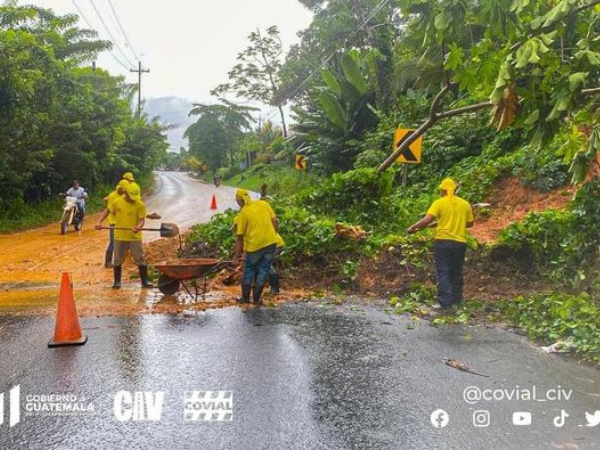 Personal se encuentra retirando derrumbe en el Km. 276.2 de la CA-09 Norte; se coordina el apoyo de maquinaria para agilizar la remoción del material...