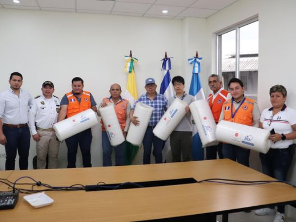 Así mismo él Lic. Yuki realizó la visita junto al Gobernador y Representante de la Municipalidad, Lic. Axel Director de Codede y Conred, realizó la visita a la aldea de Cayuga de Morales, Izabal, donde realizaron la entrega de 100 Sleeping Pad a las familias que han sido afectados por la Tormenta Tropical Julia que ha afectado el Departamento de Izabal.