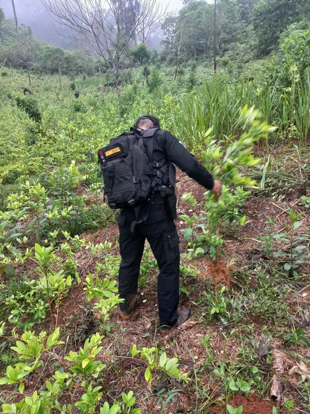Policías de la Subdirección General de Análisis e Información Antinarcótica #SGAIA reportan la localización de dos campos sembrados con arbustos de coca en la aldea Pacayal, Livingston, Izabal donde se han erradicado e incinerado 220,652 arbustos de hoja de coca en fase de crecimiento, haciendo un evaluó de 2 millones, 206 mil, 520 quetzales.