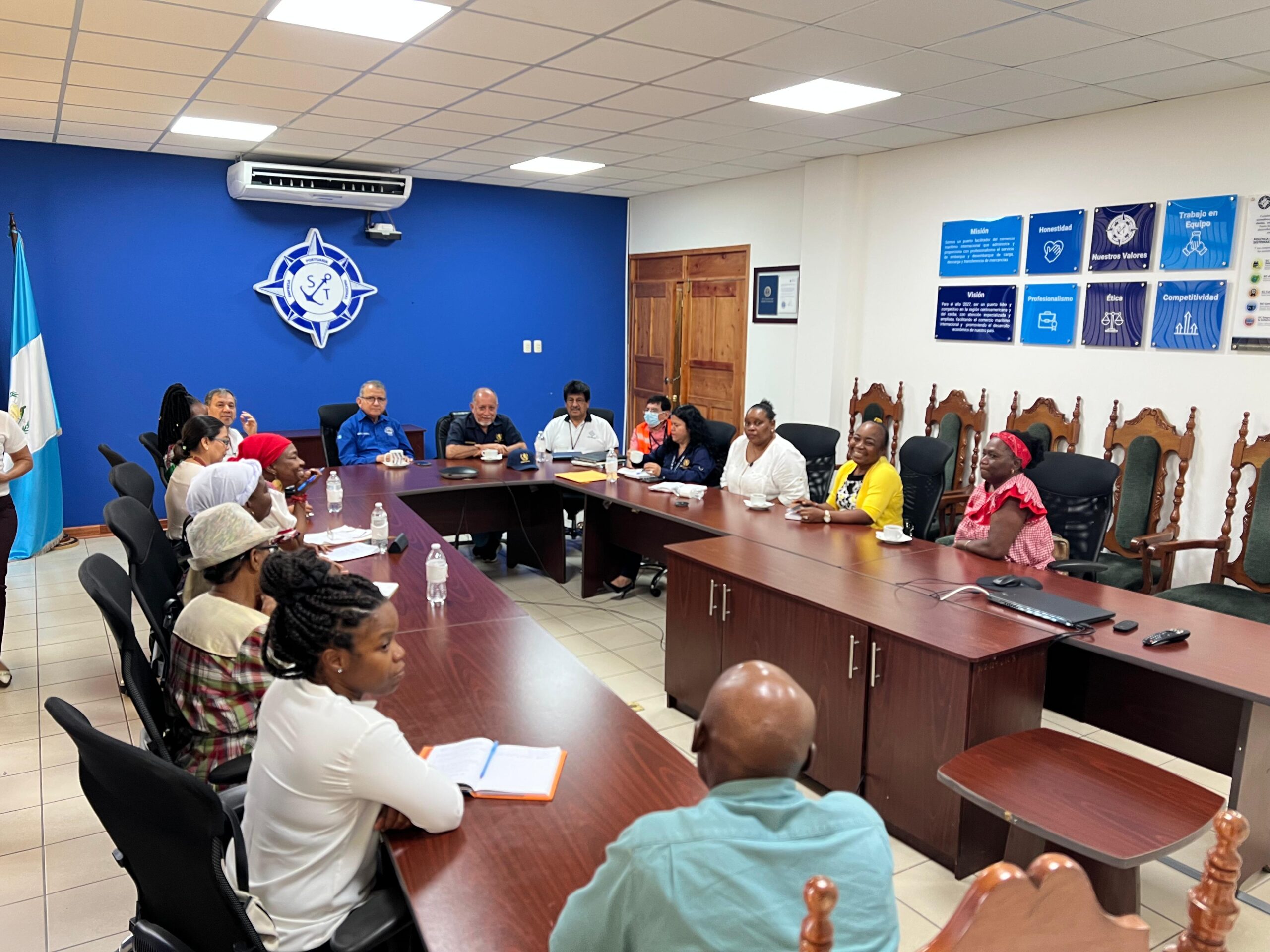 El Gobernador Departamental de Izabal, Lic. Carlos Tenas, sostuvo una importante reunión con el Gerente de la Empresa Portuaria Nacional Santo Tomás de Castilla (EMPORNAC) y representantes del pueblo Garífuna del departamento de Izabal.