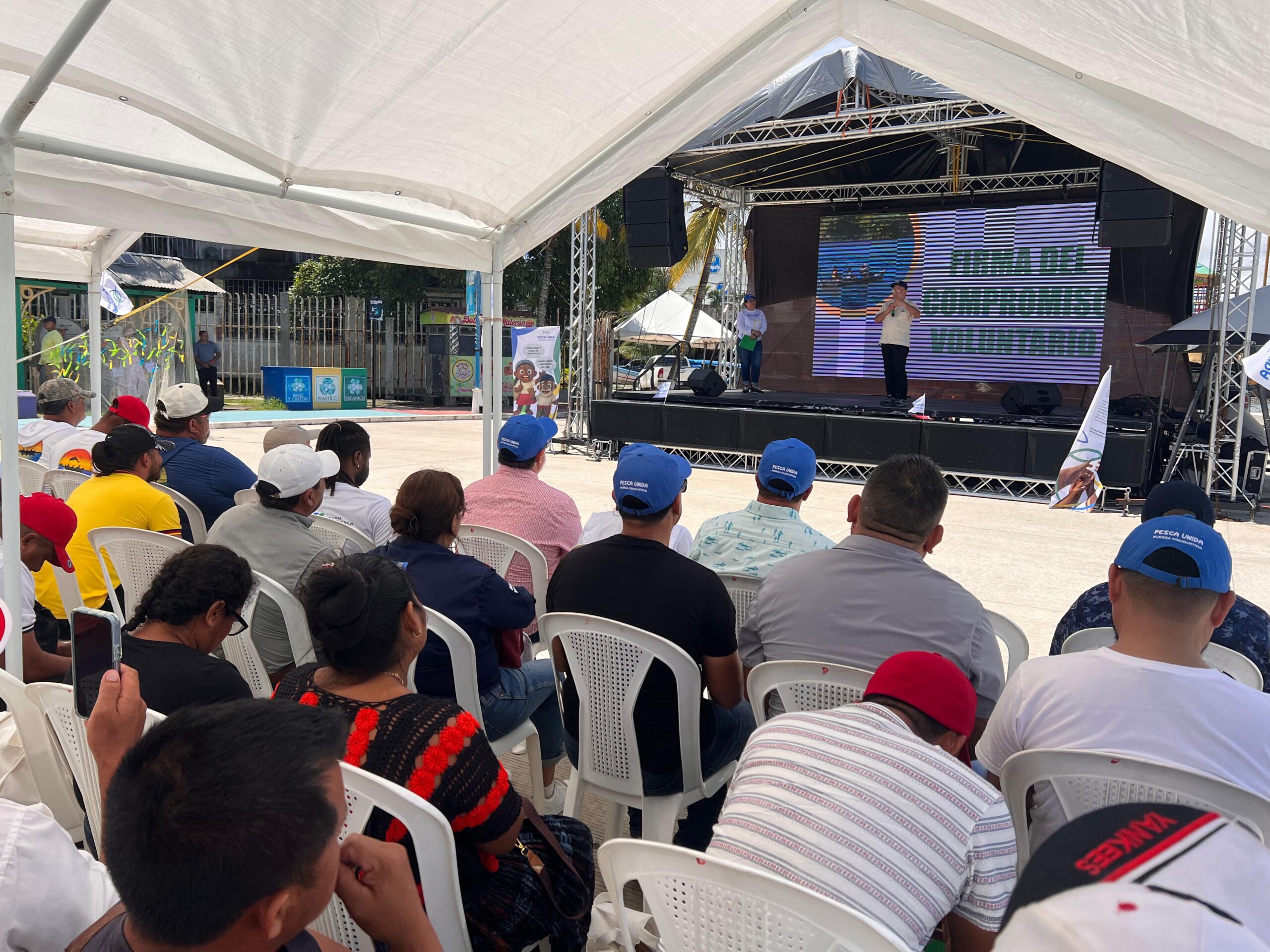 El Señor Gobernador Departamental de Izabal, Licenciado Carlos Tenas, junto al Alcalde Municipal de Puerto Barrios, Licenciado Hugo Sarceño, participaron en el lanzamiento oficial de la campaña “¡Pesca Unida, Fuerza Compartida!”.