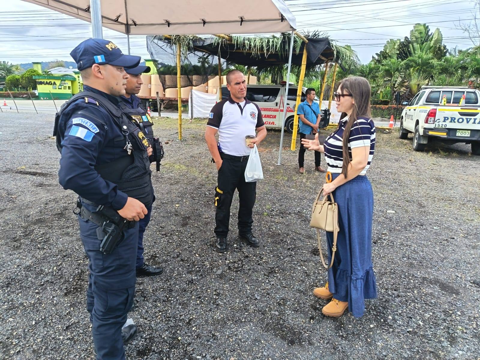 La Gobernadora Departamental de Izabal, Licda. Gilda Ismelda Córdova Pacheco, realizó recorrido por el Puesto de Gestión Institucional y de prevención SINAPRESE, instalado en el Km. 244 Aldea La Ruidosa, municipio de Morales, Izabal, en donde manifestó su total apoyo a las instituciones que están al servicio de la población durante la Semana Santa, quienes están en apresto para dar atención a los veraneantes que se encuentran en el Departamento de Izabal.