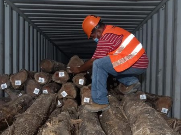 8 contenedores de especie de Teca procedientes de plantaciones del área de El Petén , con destino a la india revisamos y medimos por medio...